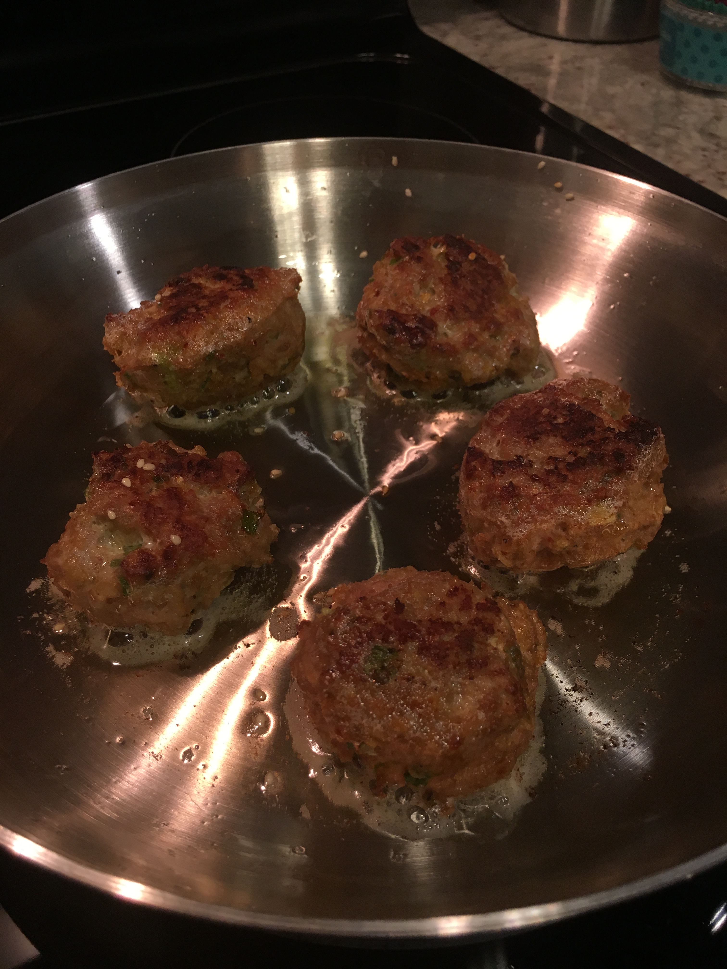Asian Turkey Meatballs searing in sesame oil.